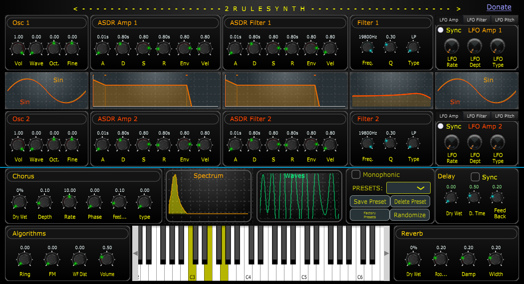 2オシレーター搭載の減算型バーチャルアナログシンセサイザー。